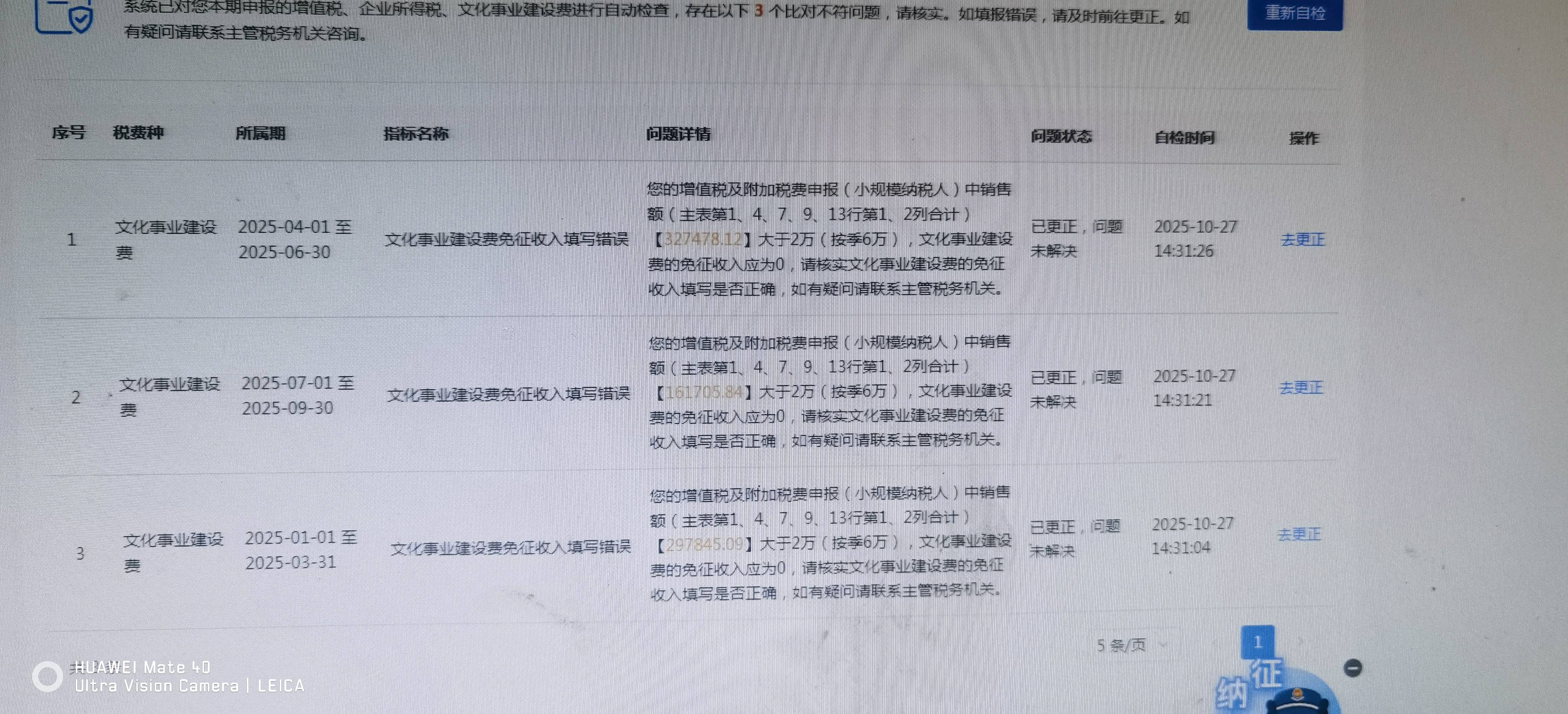 建議點(diǎn)擊“去更正”,將三個(gè)季度的“應(yīng)征收入”改為0,保留“免征收入”原值即可通過校驗(yàn)。