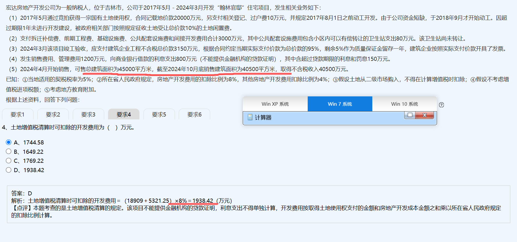 題目中提到的“可售建筑面積”和“已售面積”僅影響收入確認(rèn)和增值額計(jì)算,但開發(fā)費(fèi)用屬于項(xiàng)目整體成本,應(yīng)全額計(jì)入可扣除項(xiàng)目,不按銷售比例分?jǐn)偂?