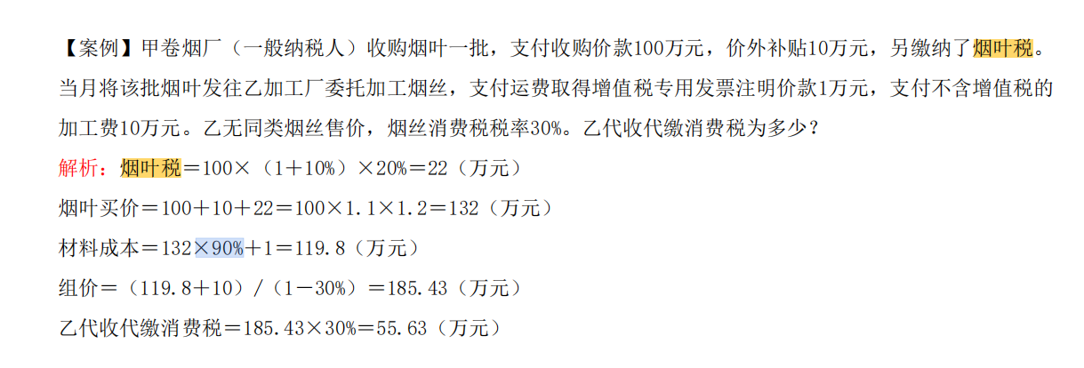 因此,132萬(wàn)元煙葉買(mǎi)價(jià)×90% = 118.8萬(wàn)元,作為實(shí)際投入成本參與組價(jià)。