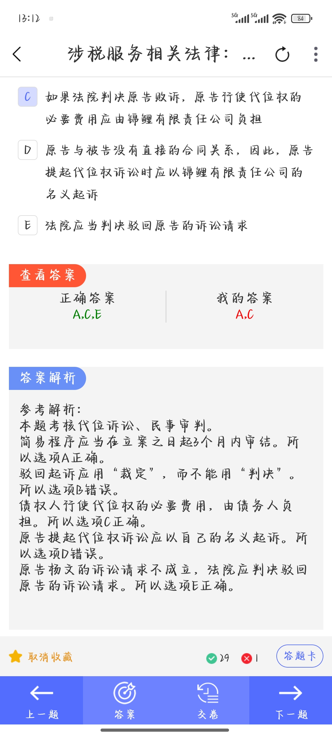 代位權(quán)訴訟中,原告必須以自己的名義起訴,而不是以債務(wù)人的名義(所以選項(xiàng)D錯(cuò)誤)。但本案敗訴的核心還是實(shí)體上的債權(quán)不存在,而非程序錯(cuò)誤。