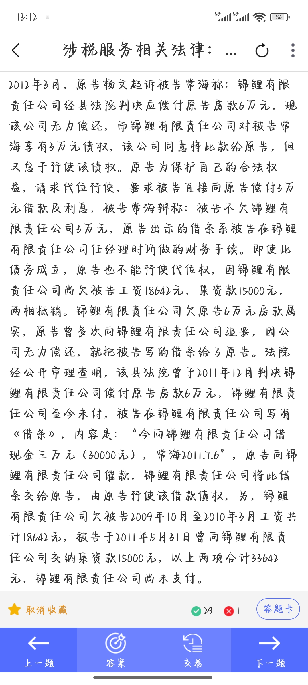 被告常海主張,錦雕公司(債務(wù)人)欠他工資和募資款合計(jì) 33642元,而他欠錦雕公司的借款是 3萬(wàn)元。