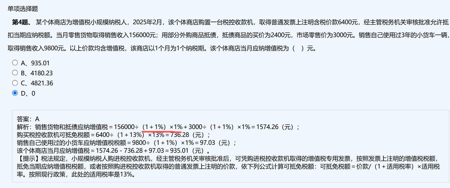題目中雖未明確說明適用稅收優(yōu)惠政策,但根據(jù)現(xiàn)行增值稅政策,小規(guī)模納稅人購進稅控收款機,經(jīng)稅務(wù)機關(guān)審核批準后,可憑普通發(fā)票上注明的價款,按13%稅率計算可抵免稅額。這是國家為鼓勵使用稅控設(shè)備而制定的法定優(yōu)惠政策,屬于“自動適用”的規(guī)定,無需企業(yè)額外申請。