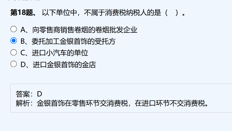 零售環(huán)節(jié)是指直接將應(yīng)稅消費(fèi)品銷(xiāo)售給消費(fèi)者的環(huán)節(jié),如金店銷(xiāo)售金銀首飾。