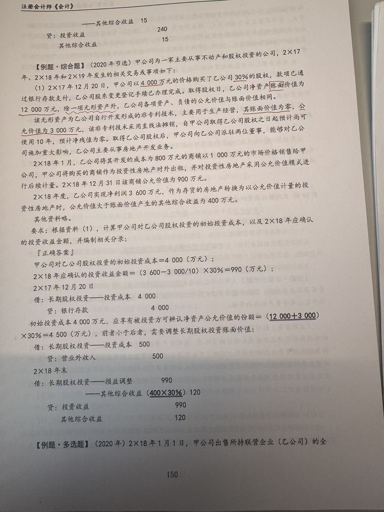 故直接按乙公司凈利潤(rùn)3600萬(wàn)元×30%確認(rèn)投資收益,無(wú)需扣除逆流收益。