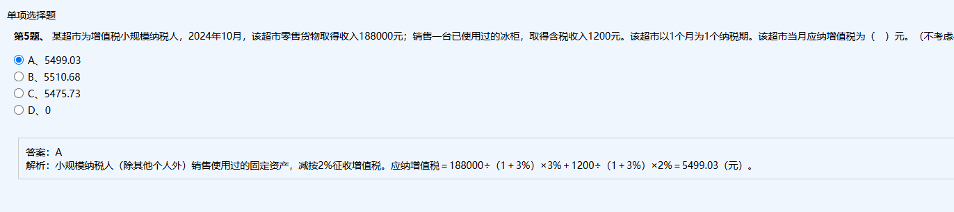 1200元的含稅收入是銷售已使用過的冰柜取得的,屬于固定資產(chǎn),但不是“自產(chǎn)”?!白援a(chǎn)”是指企業(yè)自己生產(chǎn)的貨物,而這里銷售的是外購后使用的固定資產(chǎn)。
