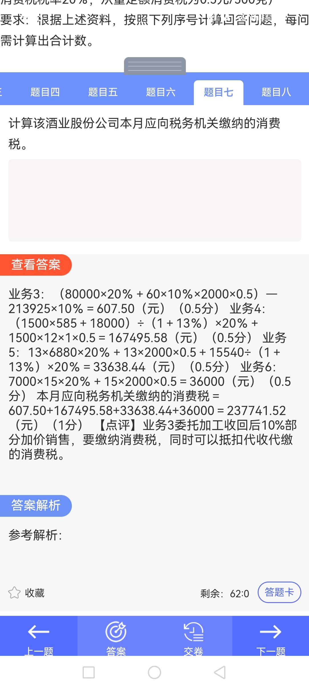 業(yè)務(wù)3中,委托加工收回的散裝白酒已由加工廠代收代繳消費(fèi)稅(213925元),這部分稅款是已經(jīng)繳納的消費(fèi)稅。根據(jù)稅法規(guī)定,委托加工收回的應(yīng)稅消費(fèi)品用于連續(xù)生產(chǎn)應(yīng)稅消費(fèi)品時(shí),可以抵扣已納消費(fèi)稅。