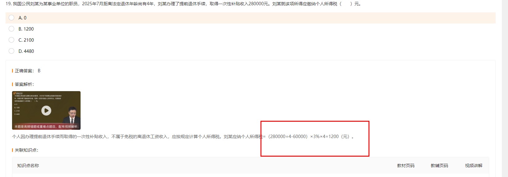 \text{應(yīng)納稅額} = \left( \frac{\text{一次性補(bǔ)貼收入}}{\text{提前退休年數(shù)}} \right) \times \text{適用稅率} \times \text{提前退休年數(shù)}