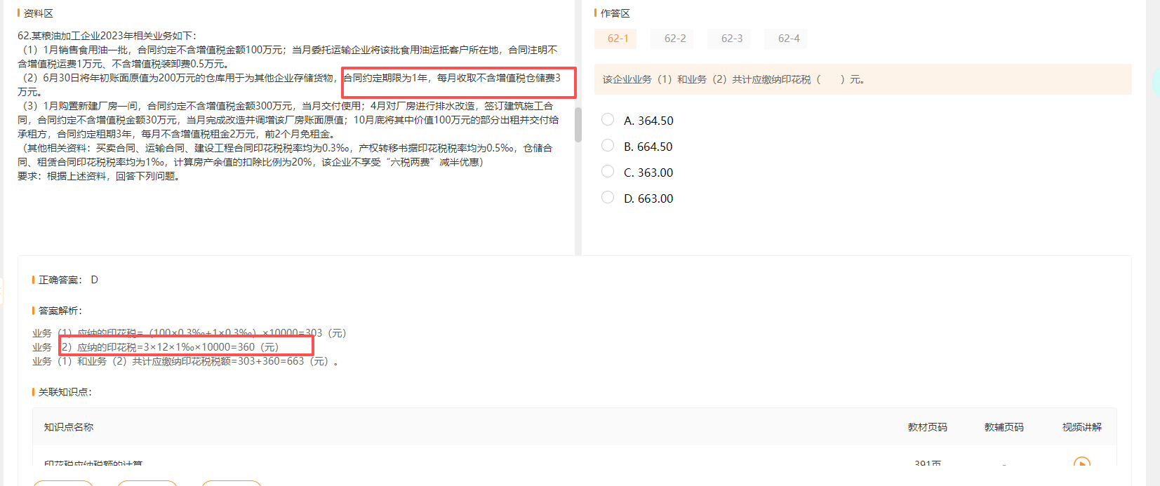 本題中合同約定期限為1年,每月收取倉(cāng)儲(chǔ)費(fèi)3萬(wàn)元,合計(jì)12個(gè)月,應(yīng)按全年12個(gè)月的總金額計(jì)稅。