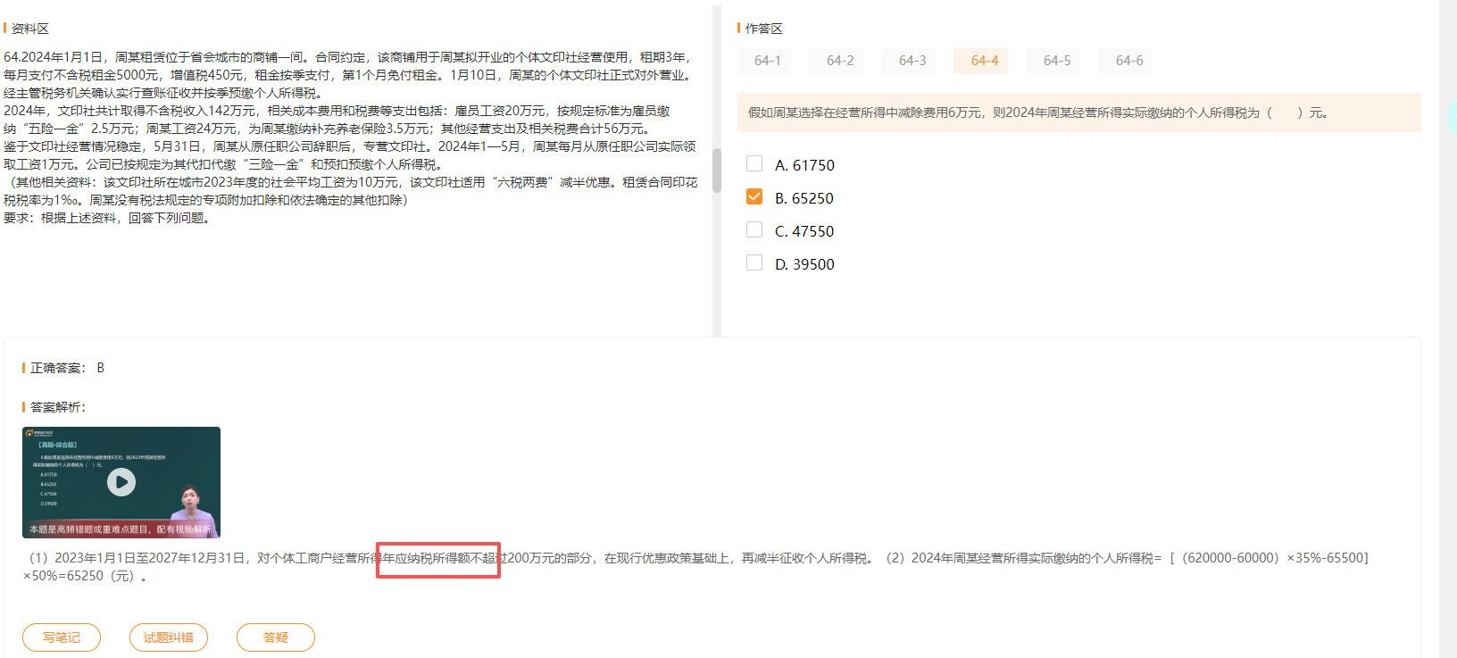 注意:這里的“減除費(fèi)用6萬(wàn)元”是稅前扣除項(xiàng)目,但題干說(shuō)“選擇在經(jīng)營(yíng)所得中減除費(fèi)用6萬(wàn)元”,實(shí)際是允許扣除的專項(xiàng)扣除,用于計(jì)算應(yīng)納稅所得額時(shí)需先扣除。