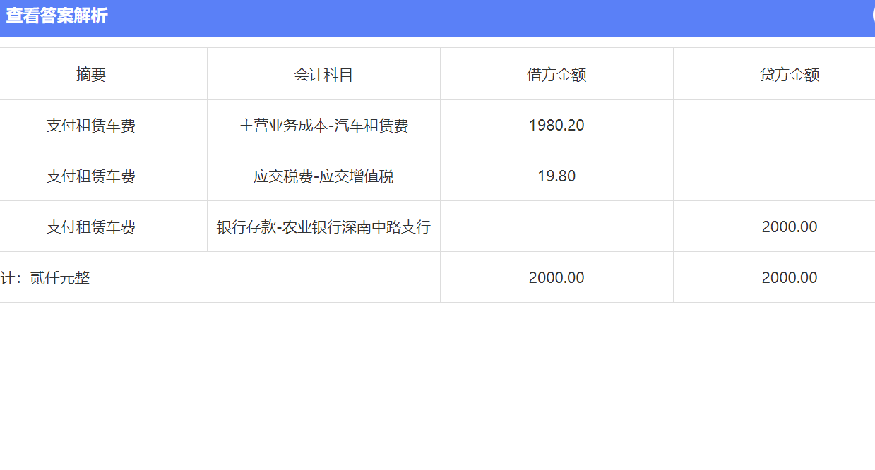 借:主營業(yè)務(wù)成本-汽車租賃費(fèi) 2000.00