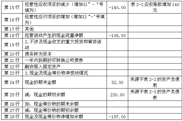 總之,間接法以企業(yè)的凈利潤(rùn)為出發(fā)點(diǎn),通過(guò)對(duì)若干項(xiàng)目的調(diào)整,最終計(jì)算確定經(jīng)營(yíng)活動(dòng)產(chǎn)生的現(xiàn)金流量。該過(guò)程主要需要調(diào)整4類(lèi)項(xiàng)目: