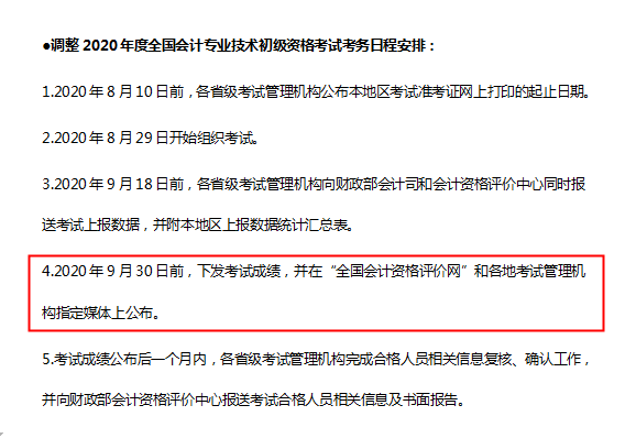 根據(jù)最新的考試政策,初級(jí)會(huì)計(jì)考試將于2020年9月30日前,下發(fā)考試成績(jī),并在“全國(guó)會(huì)計(jì)資格評(píng)價(jià)網(wǎng)”和各地考試管理機(jī)構(gòu)指定媒體上公布。
