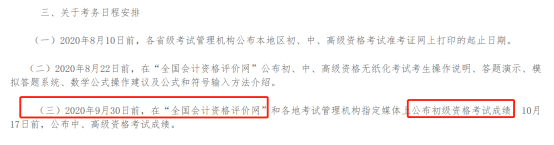 據(jù)黑龍江省財政廳的官方消息稱,2020年初級會計職稱考試成績將會于9月30前公布,具體內(nèi)容如下所示: