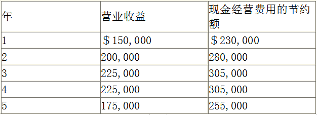 Miller公司出于稅收和財務報告的考慮而使用直線折舊法。以下的數(shù)據(jù)與第108號機器有關,該機器成本是$400,000,并且要在5年內(nèi)沖銷上列所有的金額都是稅前的。Miller公司的所得稅稅率為40%。公司要求的收益率為12%。對于第108號機器而言,其傳統(tǒng)的回收期應該為:()