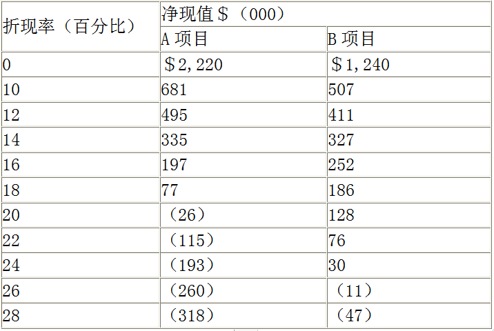 兩個(gè)項(xiàng)目的凈現(xiàn)值序列狀況如下兩個(gè)項(xiàng)目的內(nèi)含報(bào)酬率分別是多少?()