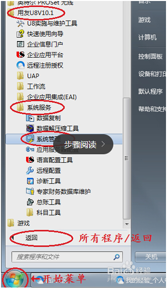 1、在成功安裝軟件的計(jì)算機(jī)上,按以下順序啟動(dòng)“系統(tǒng)管理”:“開始”→“所有程序”(以Windows7為例,WindowsXP則點(diǎn)擊“程序”)→“用友U8V10.1” →“系統(tǒng)服務(wù)”→“系統(tǒng)管理”。