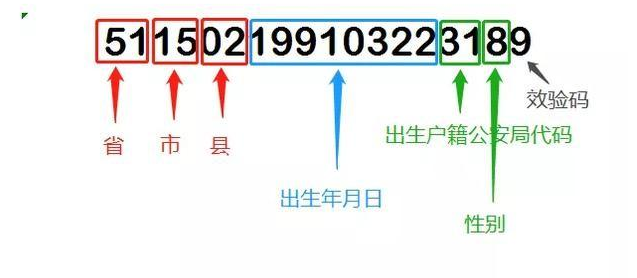 我們都知道身份證號(hào)碼一共有18位(以前的身份證號(hào)碼是15位的,但是普及二代身份證這么多年,可以說一代的15位身份證已經(jīng)極少使用了,所以今天主要講解二代身份證的內(nèi)容),身份證號(hào)碼按照“號(hào)碼段”區(qū)分大體可以分為6個(gè)信息: