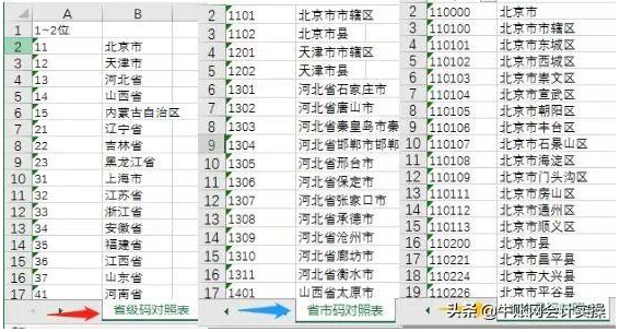 剛才我們說過了,如果直接用第3~4位,或者第5~6位的代碼去索引,由于號(hào)碼有重復(fù),所以索引出的內(nèi)容有可能就是錯(cuò)誤的。但是在人事工作中,有時(shí)我們需要精準(zhǔn)的提取出XX市、XX區(qū)縣,那我們就可以使用下面的方式來處理。