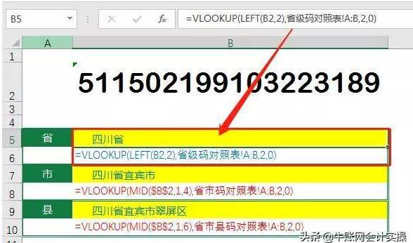 B5單元格=VLOOKUP(MID($B$2,1,2),省級(jí)碼對(duì)照表!A:B,2,0)