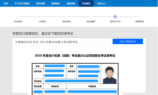 9.完成繳費后,您可以在準(zhǔn)考證打印頁面,點擊【下載準(zhǔn)考證】按鈕,將PDF保存下來,并打印攜帶至考場,作為您的參考依據(jù)。
