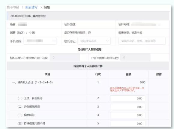 ②商業(yè)健康保險(xiǎn)、稅延養(yǎng)老保險(xiǎn)、準(zhǔn)予扣除的捐贈額、減免稅額、其他免稅收入只能通過填寫附表后帶入主表,不可直接在主表填寫。