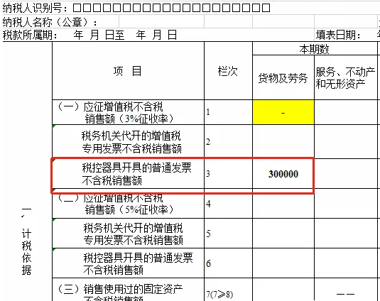 有的小伙伴可能是這樣申報的:把本季度已開的30萬開票收入填在第三欄,第一欄不用填列數(shù)據(jù),原因是:當(dāng)期申報了30萬未開票收入,這期又開票了,所以應(yīng)沖減上期申報的30萬,本期不用繳納增值稅,剛好30-30=0,不用填寫了。