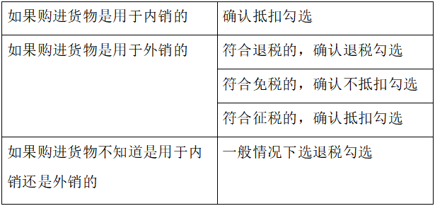 咱們先退到【發(fā)票勾選確認】界面,選擇【出口退稅類勾選】-【用途確認】,對已產(chǎn)生的數(shù)據(jù)逐一核對。