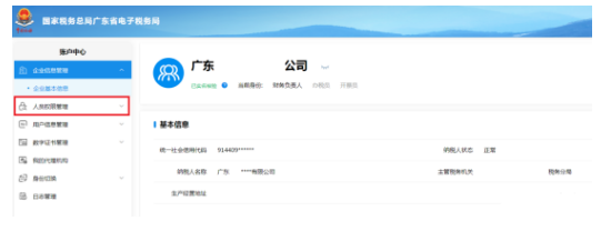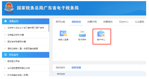 1.試點納稅人使用法定代表人或財務負責人身份登錄后,在【我的信息】菜單進入【賬戶中心】功能。