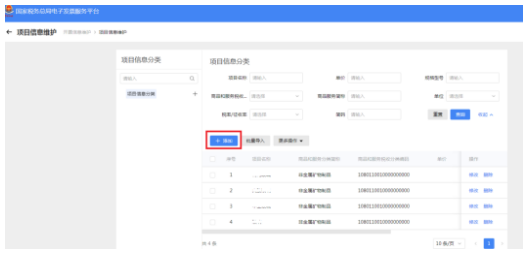 4.在【項目信息維護】功能中,點擊【添加】按鈕。