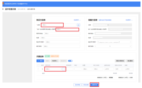 10.在發(fā)票開具界面,可選擇已設置好的客戶信息和開票項目信息,也可手動輸入上述信息,確認無誤后,點擊【發(fā)票開具】。