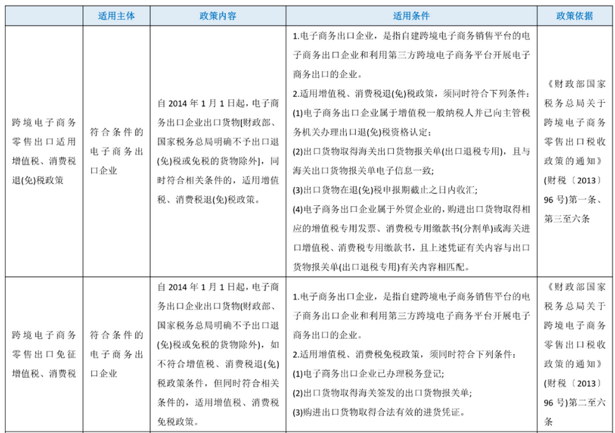 1、跨境電子商務(wù)零售出口適用增值稅、消費(fèi)稅退(免)稅政策