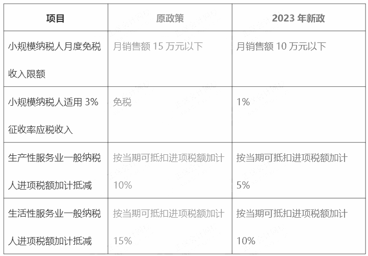 2023年增值稅新舊政策對比