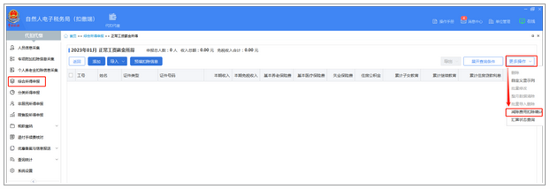1.選擇稅款所屬期,點擊【綜合所得申報】-【正常工資薪金所得】,在主界面右側(cè)點擊【更多操作】-【減除費用扣除確認】。