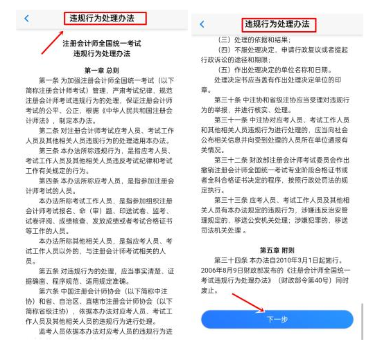 第二步:閱讀“違規(guī)行為處理方法”,完畢之后點(diǎn)擊“下一步”