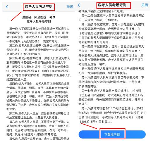 第三步:閱讀“應(yīng)考人員考場規(guī)則”,閱讀完畢之后即可下載準(zhǔn)考證!