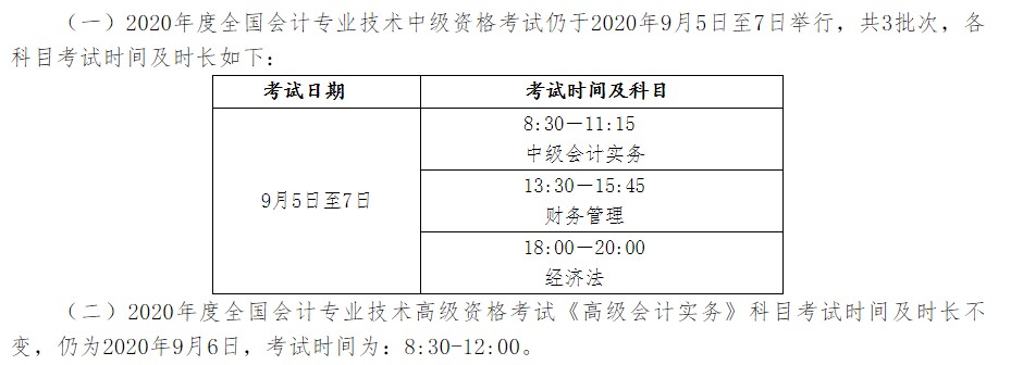 2020年山東省中級會計師考試時間內(nèi)容如下: